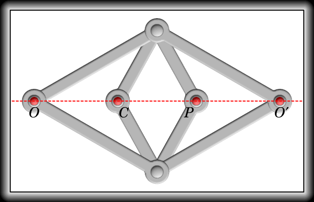 It is hardly necessary for me to state the importance of the Peaucellier compass in the mechanical arts for drawing circles of large radius. Of course the various modifications of the “cell” I have described may all be employed for the purpose. The models exhibited by the Conservatoire and M. Breguet are furnished with sliding pivots for the purpose of varying the distance between O and Q, and thus getting circles of any radius.