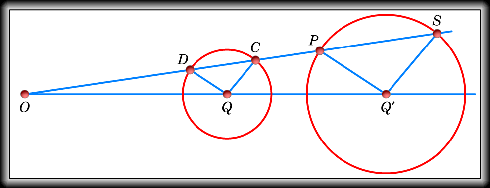 wherever C may be on the circle. That is, since OM and OR are both constant, if while C moves in a circle P moves so that O, C, P are always in the same straight line, and so that OC ⋅ OP is always constant; then P will describe the straight line PM perpendicular to the line OQ.