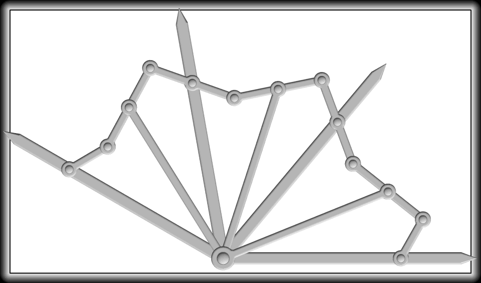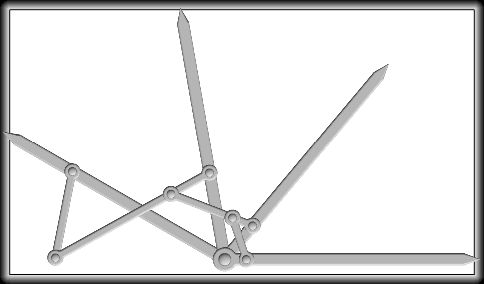 These systems, built up of pieces pointed or pivoted together, and turning about pivots attached to a fixed base, so that the various points on the pieces all describe definite curves I shall term “link-motions,” the pieces being termed “links.” As, however, it sometimes facilitates the consideration of the properties of these structures to regard them apart from the base to which they are pivoted, the word “linkage” is employed to denote any combination of pieces pivoted together. When such a combination in pivoted in any way to a fixed base, the motion of points on it not being necessarily confined to fixed paths, the link-structure is called a “linkwork:” a “linkwork” in which the motion of every point is in some definite path being, as before stated, termed a “link-motion.” I shall only add to these expressions two more: the point of a link-motion which describes any curve is called a “graph,” the curve being called a “gram” (3).